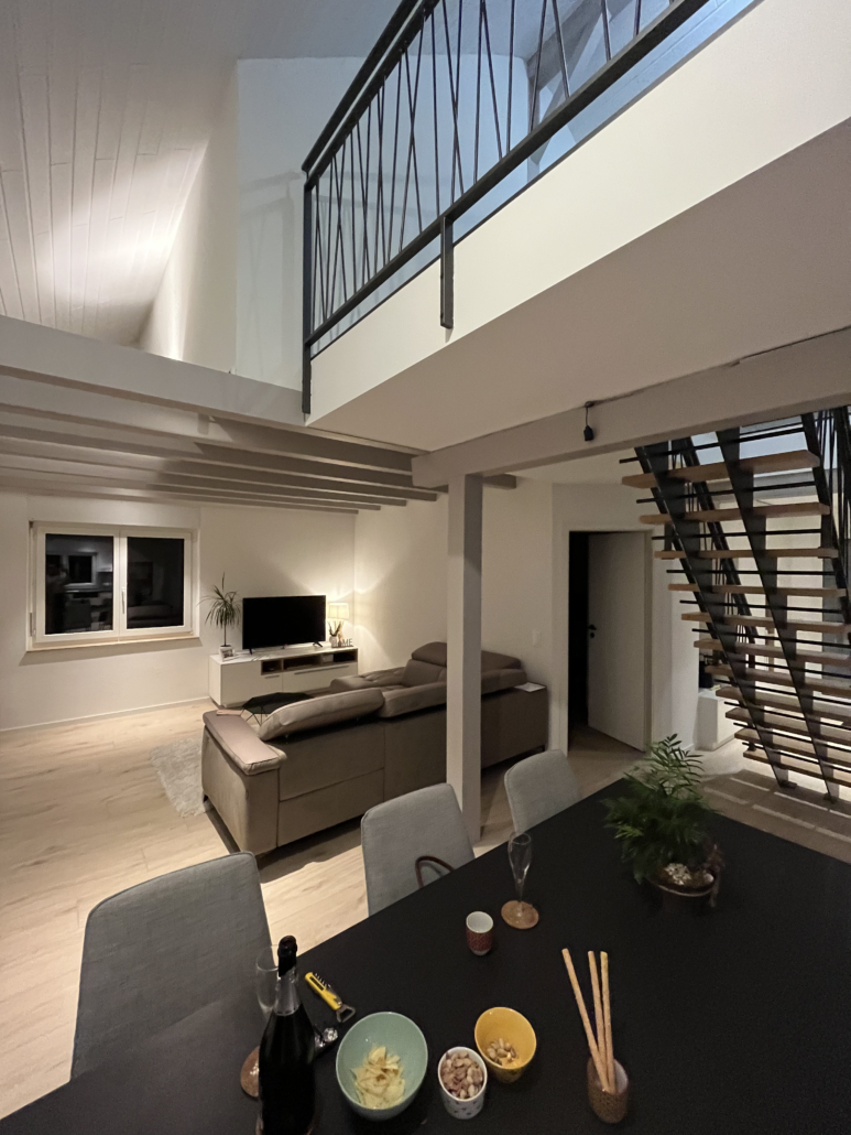 • Cuisine et escalier : une reconfiguration des parois de la cuisine a permis de fluidifier les volumes, tandis que l’escalier intérieur a été entièrement repensé pour améliorer circulation et esthétique.